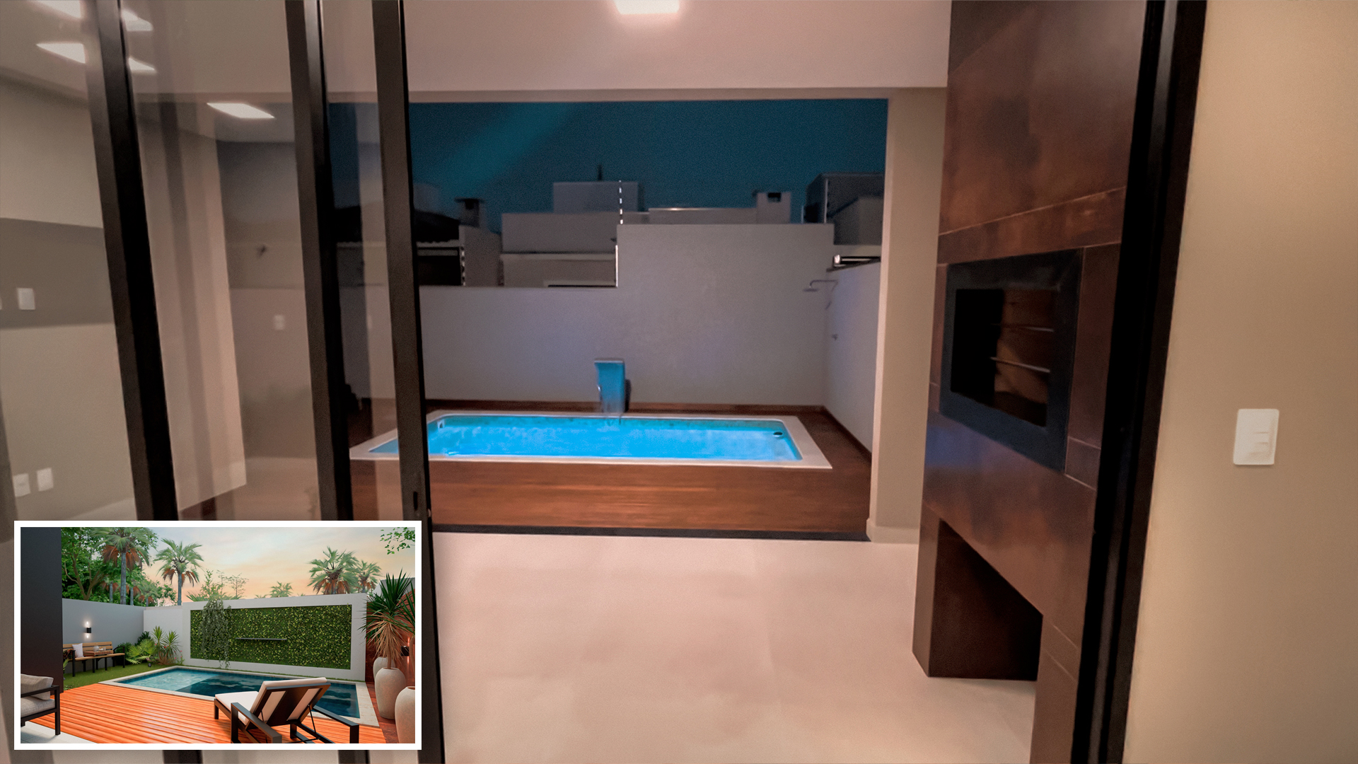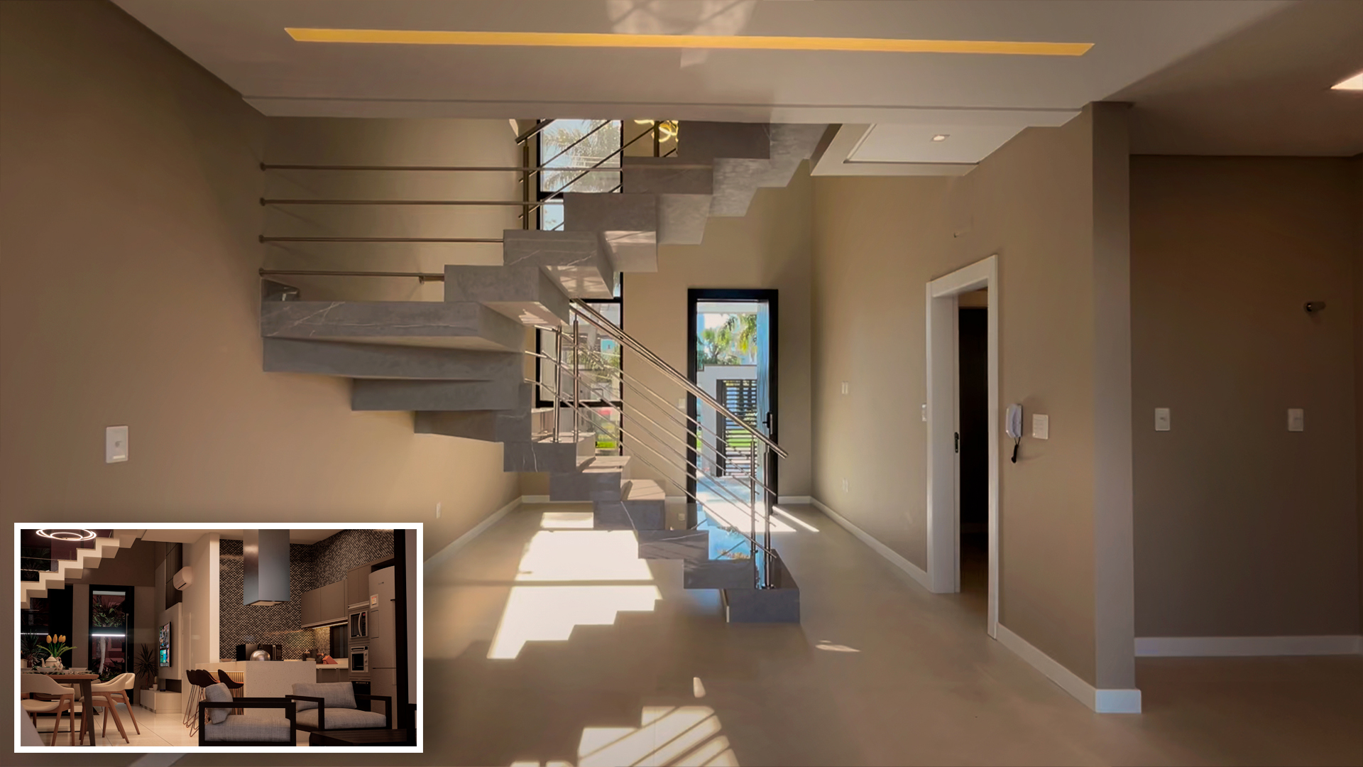 • - Sala de estar com pé direito duplo - Churrasqueira a carvão - Piscina - Piso vinílico nos quartos - Porcelanato - Rebaixamento em gesso - Infraestrutura para ar condicionado - Aquecimento a gás - Acabamento de alto padrão